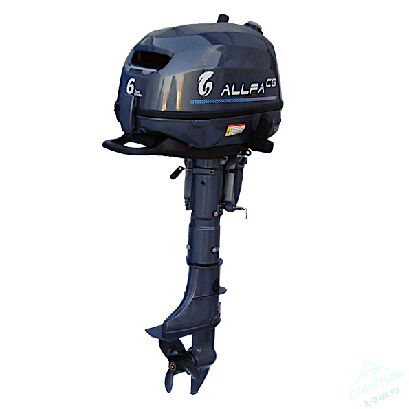 ПроизводительALLFAТип МоторачетырехтактныйМощность (л/с)6 л.с.Мощность (кВт)4.4 кВтКоличество цилиндров1Рабочий объем139 см³УправлениерумпельМаксимальные обороты двигателя5500 об/минЗапускручнойТип топливаБензин АИ92Высота транцаSВысота транца (точно)S - 381 ммДиаметр цилиндра62 ммХод поршня46 ммРедукция2.08 :1Тип смазкисмесьОхлаждениеводяноеТопливный баквнешний и встроенныйОбъем топливного бака1.1 л.Передачавперед-нейтраль-назадСистема зажиганияCDIКоличество скоростей вперед1 (Плавная)Количество скоростей назад1 (Плавная)Подъем мотораручнойКоличество лопастей винта3Ширина333 ммВысота1040 ммДлина750 ммВес24 кгЕдиница измеренияшт -