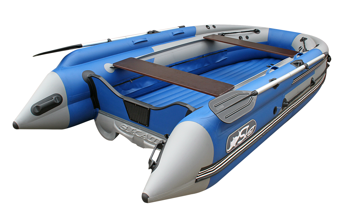 Лодка Скат Тритон 390Fi НД с интегрированными фальшбортами и трехкилевым дном тримаранного типа станет отличным выбором для ценителей скорости и активного отдыха! Интегрированные фальшборта — это новейшая разработка. В данном случае фальшборта являются отдельным элементом, поэтому лодка имеет всего 6 герметичных отсеков плюс отдельно дно. На стационарный транец можно установить мотор мощностью до 25 л.с. Днище лодки усилено резиновыми лентами по всем трем килям по всей длине.